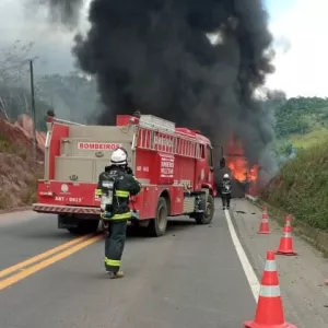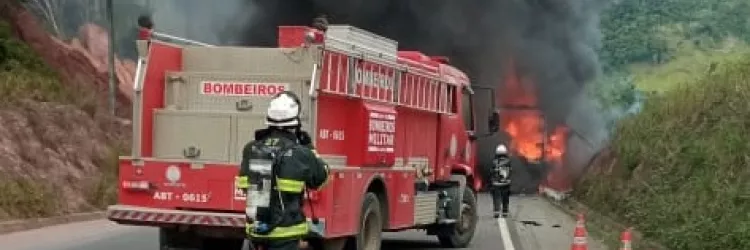 Incêndio em caminhão baú é debelado por bombeiros do 6º BBM