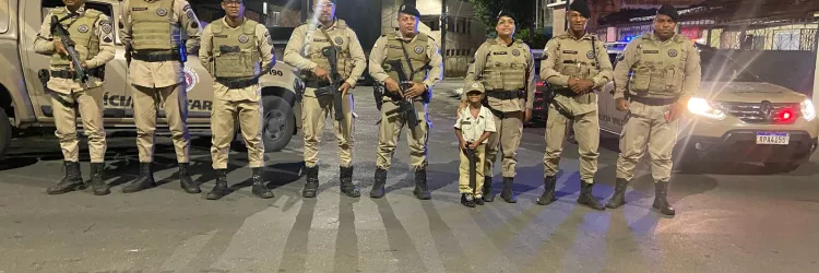 Policiais militares participam de festa de aniversário de uma criança em Cajazeiras