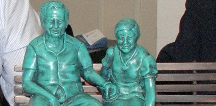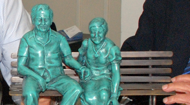 O artista mostrou ao presidente, Domingos Leonelli, uma réplica reduzida em bronze, onde Jorge Amado sentado num banco, segura na mão da sua companheira e escritora Zélia Gattai. O inseparável cãozinho de Zélia, Fadul, da raça Pug, que morreu na semana passada, também entrou no rol dos imortais.