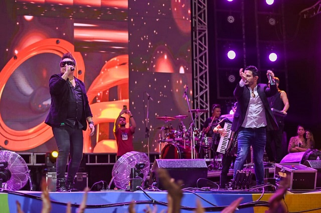 A primeira noite da segunda semana de festa no Parque de Exposições de Salvador conseguiu repetir a dose e reunir um público animado, que acompanhou tudo até o final da última apresentação. Quem encerrou os trabalhos do dia foi a dupla Bruno & Denner. Os cantores mineiros interagiram bastante com o público. Dona de sucessos como A Dama da Noite e Milionário, a dupla conseguiu conquistar o coração dos baianos e visitantes.
