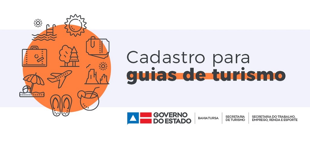 De 26 a 05 de abril, o Governo do Estado, por meio da Superintendência de Fomento ao Turismo da Bahia (Bahiatursa), cadastrará guias de turismo. Profissionais interessados devem acessar o site www.sufotur.ba.gov.br e preencher formulário encontrado no local. Esta é mais uma ação que objetiva traçar um panorama do perfil dos trabalhadores deste segmento na Bahia, viabilizando a elaboração de políticas públicas para ampliar o desenvolvimento do setor. Podem se inscrever guias de todo o estado que façam parte do Cadastur (Cadastro dos prestadores de serviço no turismo) do Ministério do Turismo e tenham experiência de trabalho comprovado.