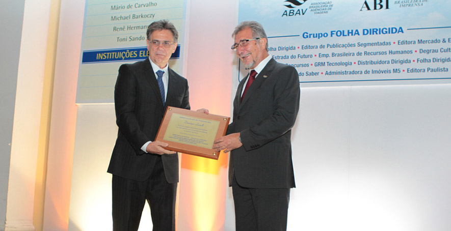 O secretário do Turismo da Bahia, Domingos Leonelli, foi um dos premiados do Troféu Personalidade do Turismo 2012, concedido pela revista Folha do Turismo, do Grupo Folha Dirigida, na noite desta quarta-feira (28). A cerimônia foi realizada no Hotel Copacabana Palace, no Rio de Janeiro e contou com a presença de diversos empresários do segmento turístico.