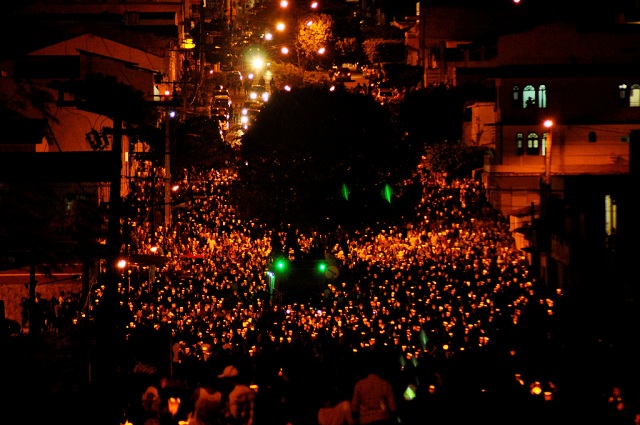 Serrinha - Quem passar pelo município de Serrinha, durante a Semana Santa, terá a oportunidade de presenciar um belo espetáculo de tradição e fé. A programação especial começou no último domingo (13), com a benção e a Missa de Ramos. As comemorações seguem nesta terça e quarta, com a celebração da Missa de Santos Óleos e a caminhada penitencial. No entanto, o ponto alto dos festejos ocorre na quinta-feira santa, quando acontece a Procissão do Fogaréu. Após a missa na Catedral de Nossa Senhora de Santana, cerca de 12 mil pessoas caminham pelas ruas com velas acesas nas mãos, iluminando o caminho até o monte, onde a Paixão de Cristo é encenada ao ar livre.