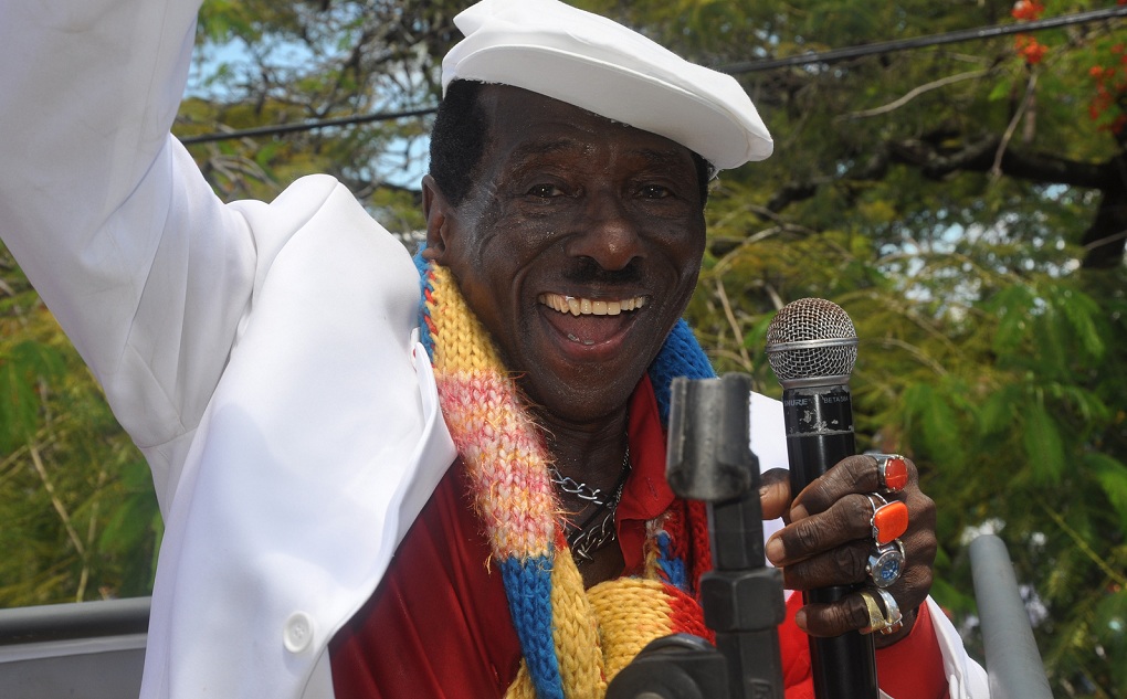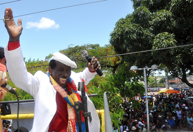 O sambista Riachão, do alto do carro da Mudança do Garcia, acena para o público Fotos: Rita Barreto/ Bahiatursa
