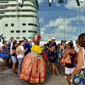 Turistas de três navios recebidos com festa no Porto de Salvador