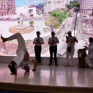 Grupos de capoeira, dançarinos de axé e oficina de turbante atraem público da Abav para o estande da Bahia