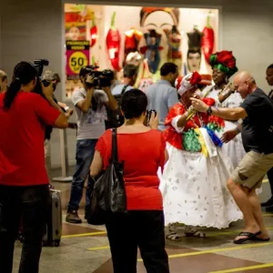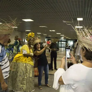 Trios de forró, quadrilhas e baianas animam turistas no aeroporto internacional de Salvador