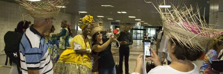 Turistas são recebidos com animação e forró na chegada à Bahia