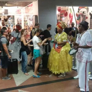Baianas e capoeiristas no aeroporto até domingo
