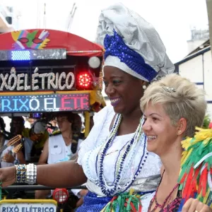 Baianas e Rixô Elétrico recepcionam turistas no carnaval