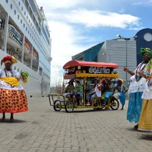 Receptivo especial da Bahiatursa dá boas vindas a passageiros de transatlânticos no Porto de Salvador