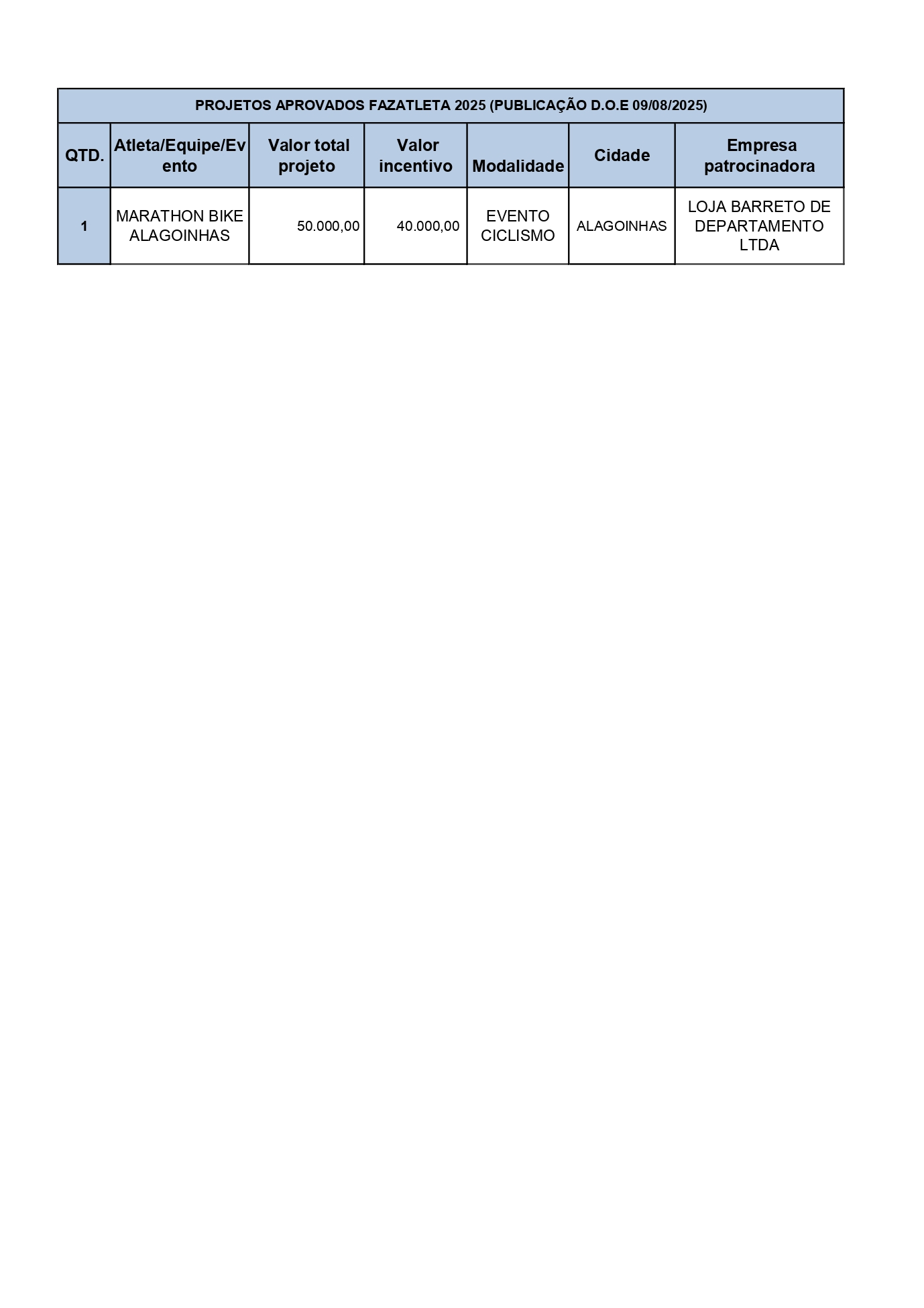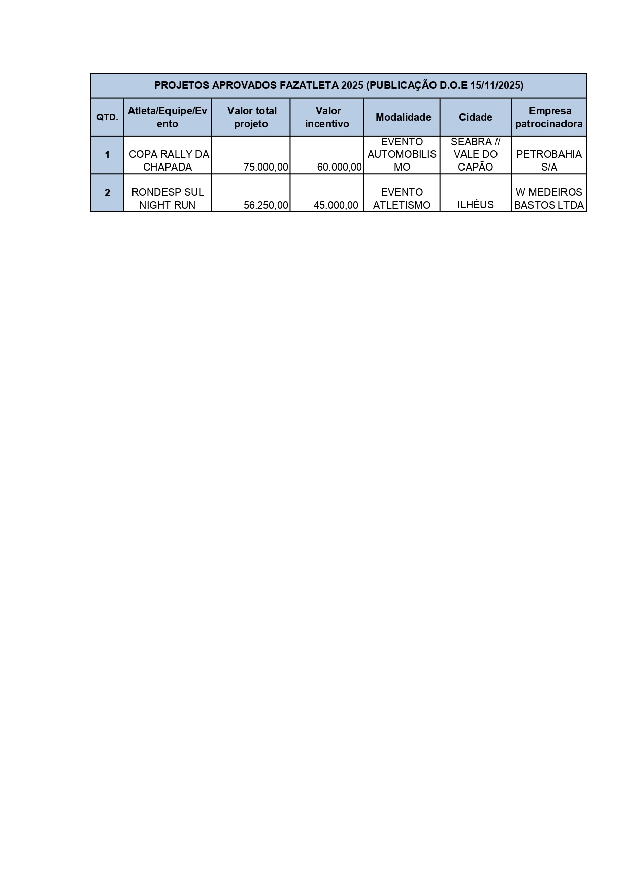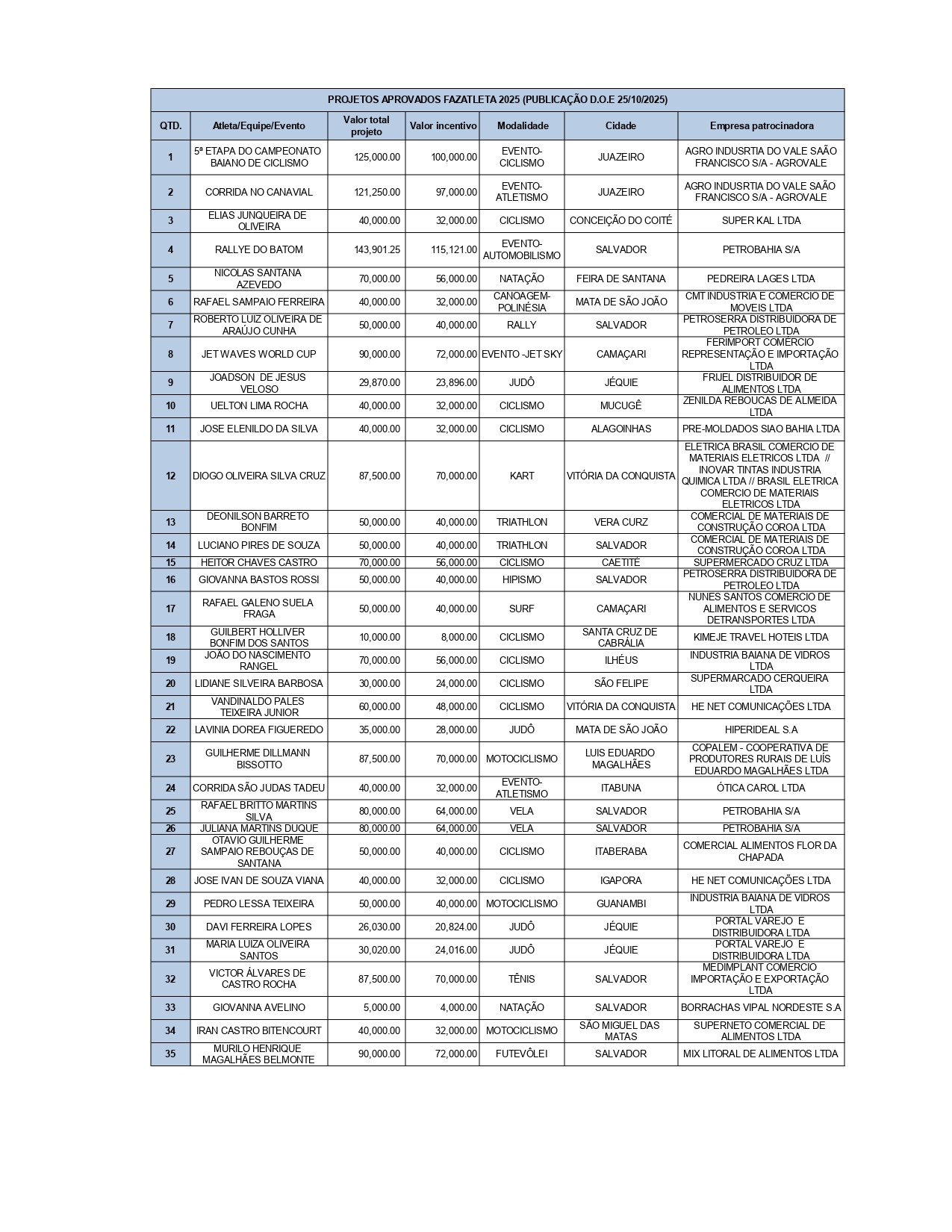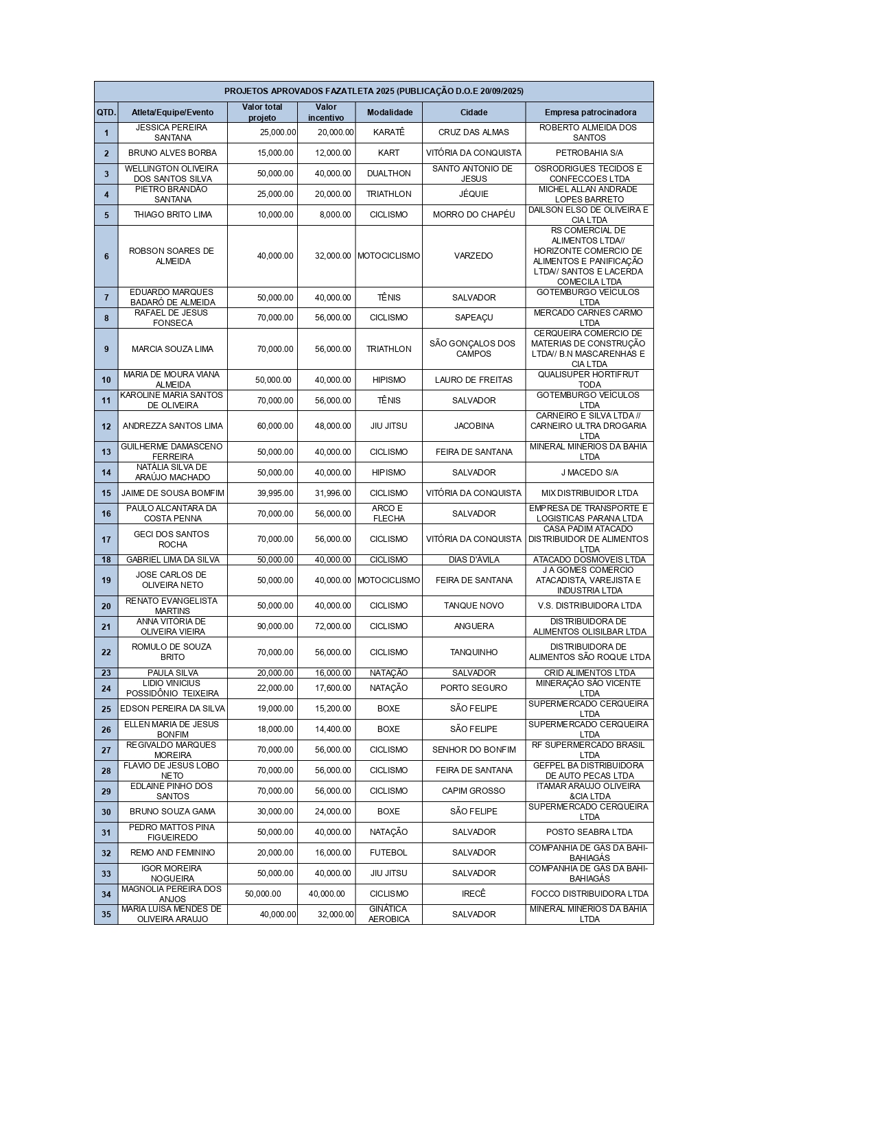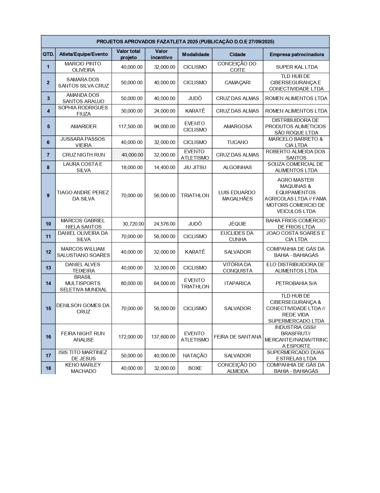 Atletas contemplados e Empresas patrocinadoras