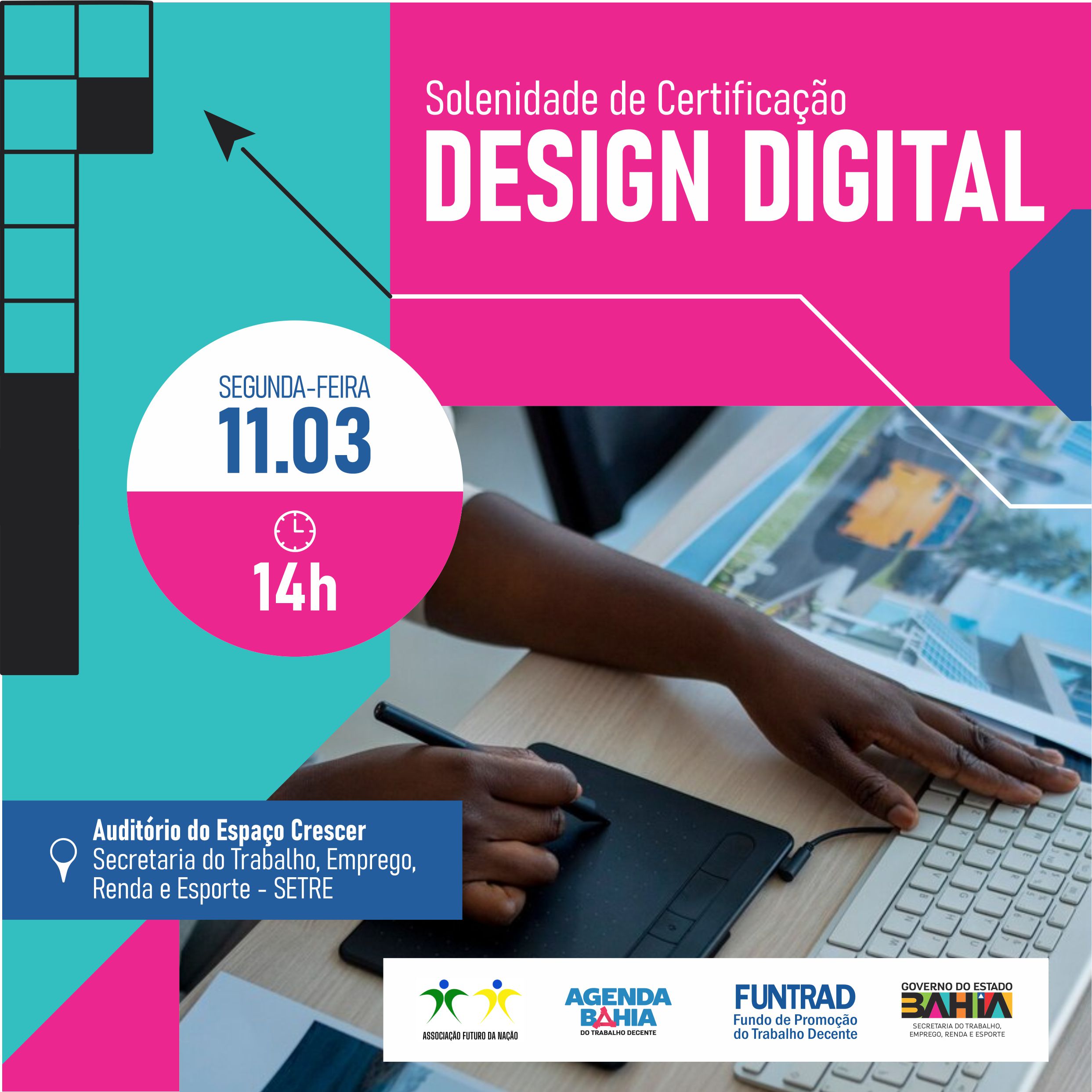 Oitenta jovens e adultos, com idade entre 14 e 40 anos, participam da solenidade de certificação do curso de design digital dentro do projeto ‘Caminhando para o Futuro’, nesta segunda-feira, 11, no Espaço Crescer da Secretaria do Trabalho, Emprego, Renda e Esporte (Setre).