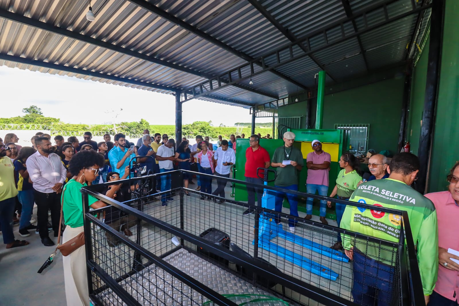 Foram entregues três equipamentos: 01 prensa para papel/papelão, pet e similares (compactação mínima de 30 toneladas e capacidade de produção de, no mínimo, 1.200 kg/h); 01 carro elétrico compacto, para transporte de carga e/ou coleta de resíduos sólidos ( movido a eletricidade fornecida por baterias recarregáveis) e 01 balança eletrônica com capacidade de carga máxima 3.000kg. O investimento é de R$ 62.899 mil.