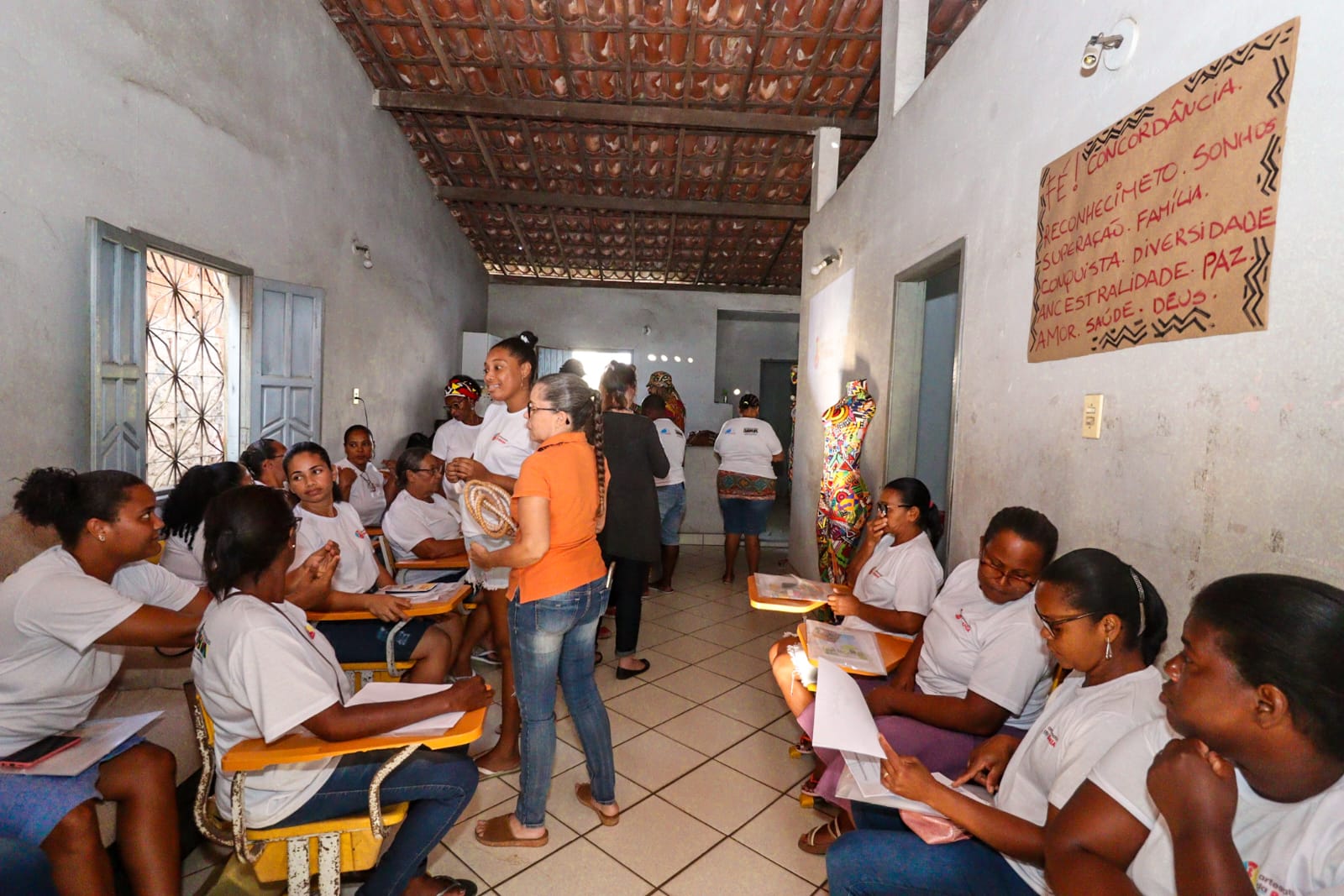 Artesãs do Quilombo Pitanga de Palmares, no município de Simões Filho, estão participando de oficinas para confecção de acessórios de moda, através do projeto ‘Collab Artesanato da Bahia com Meninos Rei’, lançado nesta segunda-feira, 26, no Espaço Crescer da Secretaria do Trabalho, Emprego, Renda e Esporte (Setre).