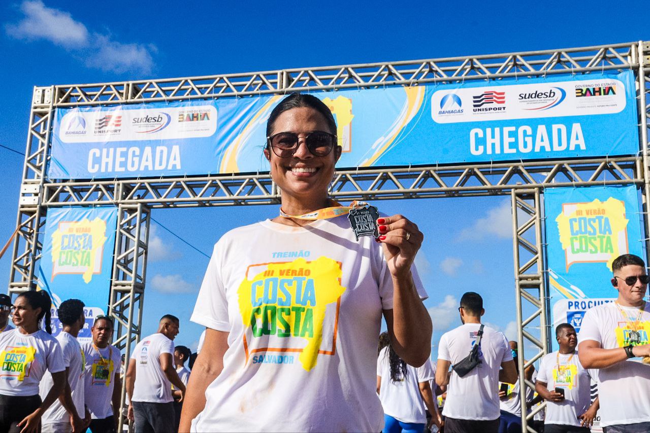 Um dos momentos mais marcantes do evento foi o ‘Treinão Salvador’, realizado no domingo (16), que reuniu mais de 5 mil corredores amadores em provas de 5 km e 10 km pela orla da cidade. Dentre eles, a corredora amadora Edna Maria Oliveira, de 52 anos, celebrou sua participação com as amigas e destacou a importância de eventos como esse para a promoção do esporte.