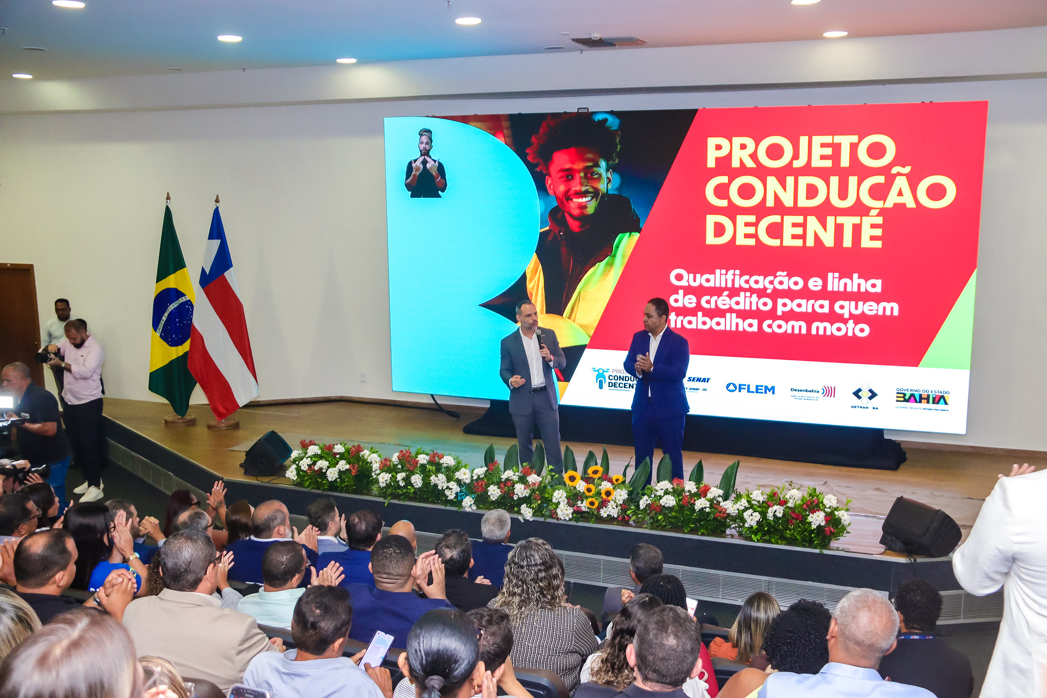 Motofretistas e mototaxistas que exerçam atividades remuneradas com pilotagem de motocicletas poderão inscrever-se, entre 05 e 16 de maio, no projeto Condução Decente, iniciativa do Governo da Bahia, por meio da Secretaria do Trabalho, Emprego, Renda e Esporte (Setre), lançada pelo governador Jerônimo Rodrigues nesta segunda-feira, 07, no auditório do Centro de Operações e Inteligência da Segurança Pública (CAB).
