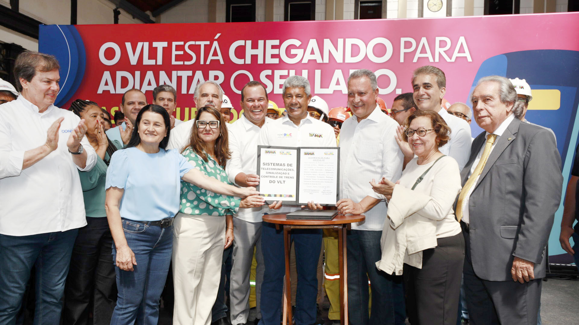 As obras do Veículo Leve sobre Trilhos (VLT) seguem em ritmo acelerado e entram agora em uma nova fase. Nesta segunda-feira (21), o governador Jerônimo Rodrigues, acompanhado do ministro da Casa Civil, Rui Costa, assinou duas autorizações fundamentais para o avanço do projeto: o aditivo contratual do Lote 1, que compreende o trecho entre Calçada e Comércio, e o lançamento do edital de Sinalização e Telecomunicações dos Lotes 1, 2 e 3.