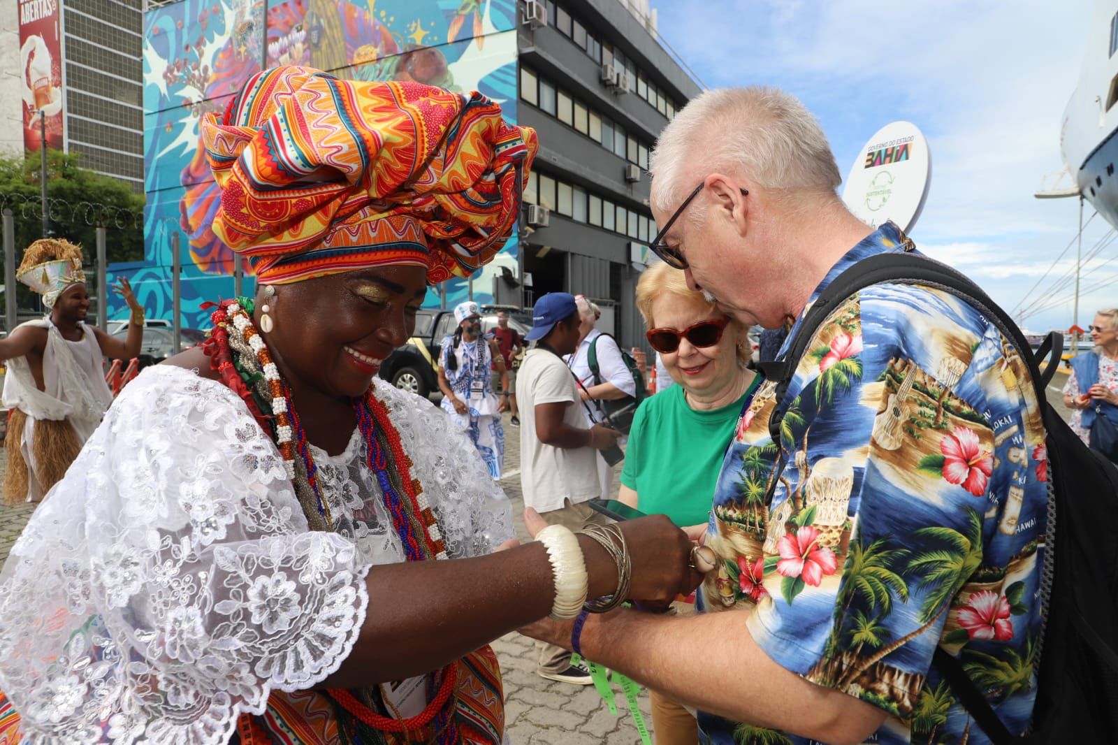O navio de cruzeiro português Vasco da Gama atracou no porto de Salvador, nesta segunda-feira (3) de Carnaval, com quase mil passageiros a bordo, a maioria da Alemanha. Eles tiveram receptivo especial da Secretaria de Turismo do Estado (Setur-BA), com baianas típicas, a percussão do bloco afro Muzenza e muita animação. Após o desembarque, os cruzeiristas estrangeiros aproveitaram o dia se divertindo nos circuitos da festa e visitando atrativos turísticos, na capital e Costa dos Coqueiros.