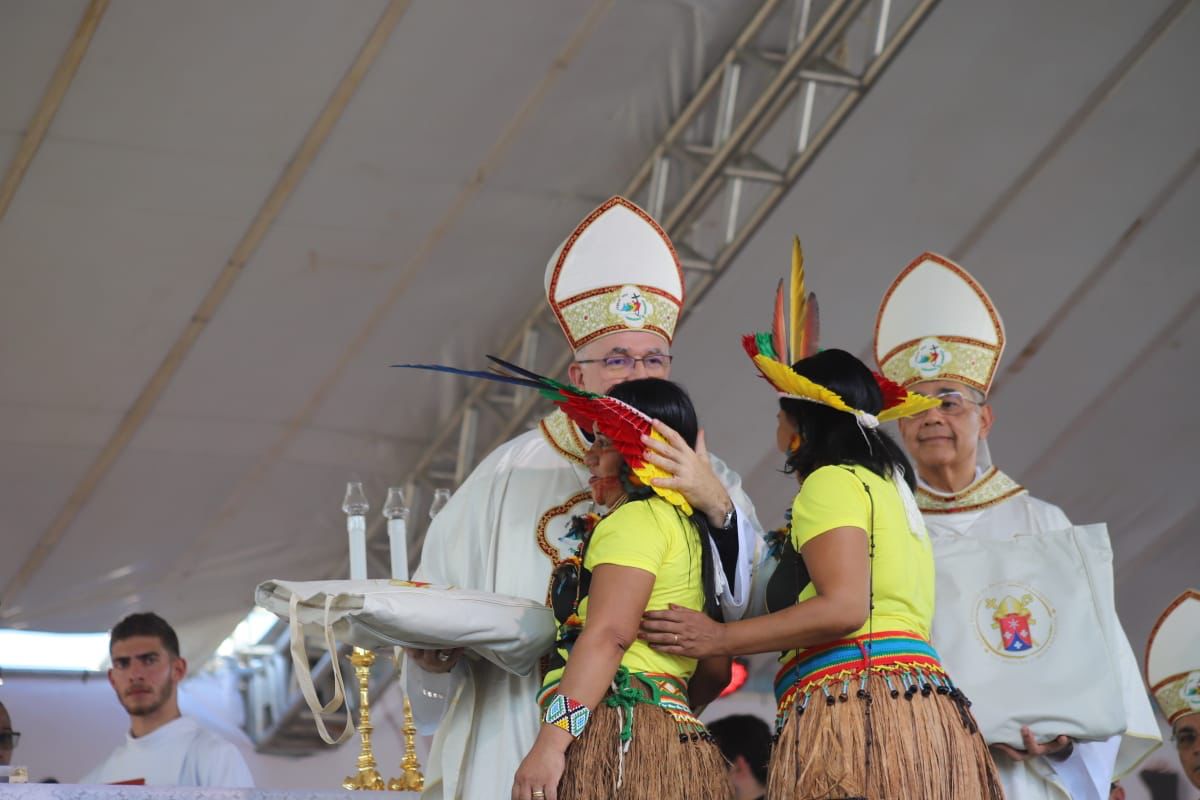 As comemorações do Jubileu Eucarístico dos 525 anos da Primeira Missa no Brasil, com a presença da cruz original, vinda de Portugal, tiveram seu ponto alto, no sábado (26), com a celebração da Missa Pontificial, na praia de Coroa Vermelha, em Santa Cruz Cabrália, na Costa do Descobrimento. Mais de 10 mil pessoas participaram, entre autoridades religiosas e civis, indígenas, moradores da região e turistas. A programação durante o dia incluiu a Carreata da Fé e a Procissão de Nossa Senhora da Esperança, na cidade de Porto Seguro, além de apresentações musicais e show pirotécnico, à noite, em Cabrália.