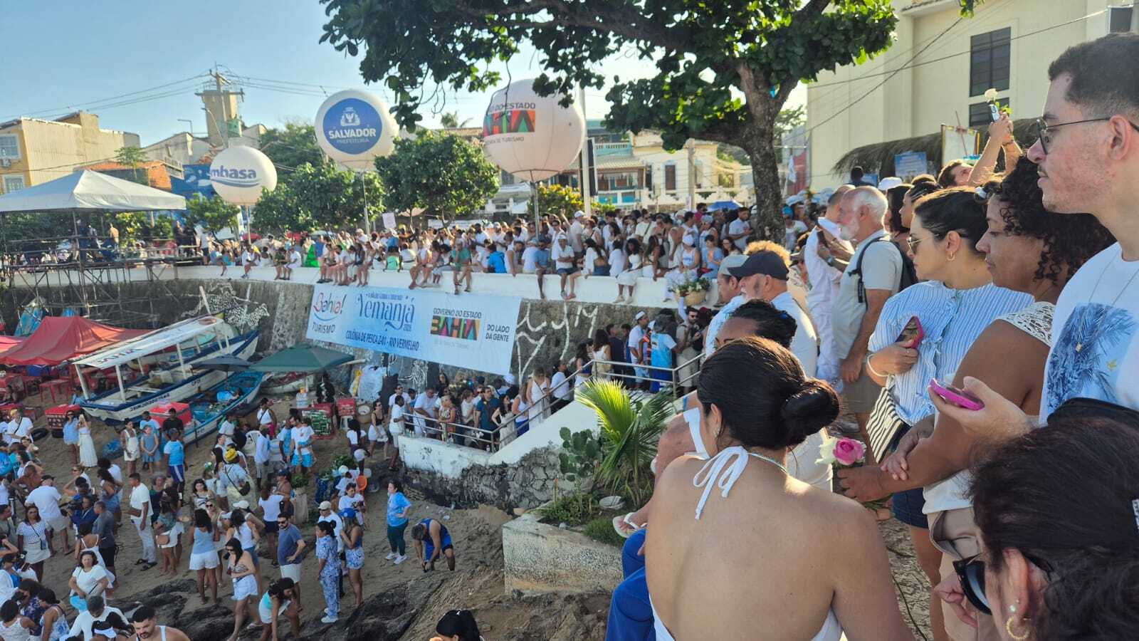 “Não conhecia essa celebração. Hoje é o dia do meu aniversário e fiz questão de estar aqui. Peguei um barco e entrei no mar, de onde tive uma vista linda, inesquecível”, completou o gaúcho Bernardo Fuscaldo.