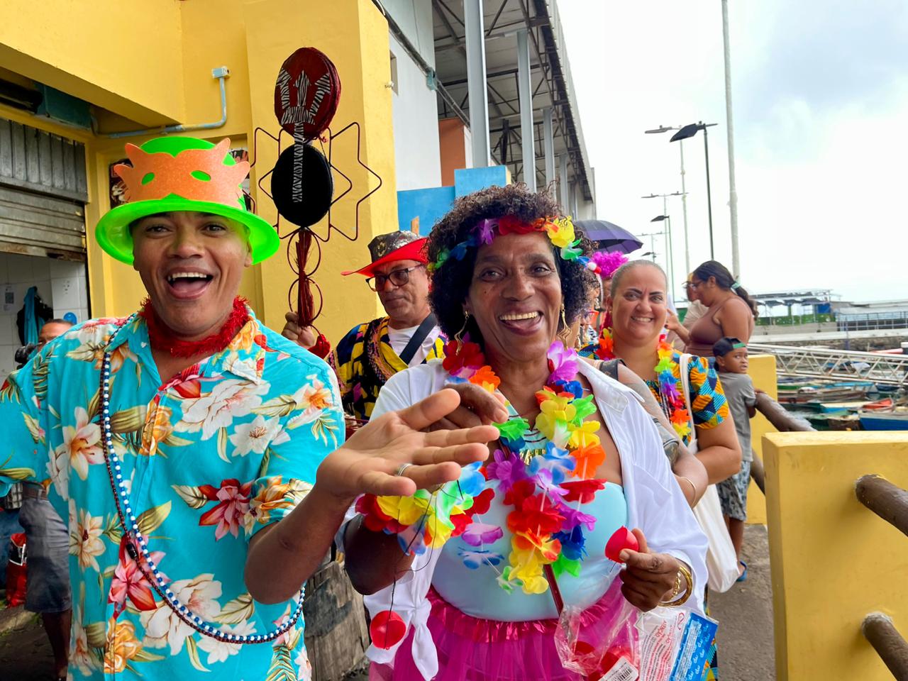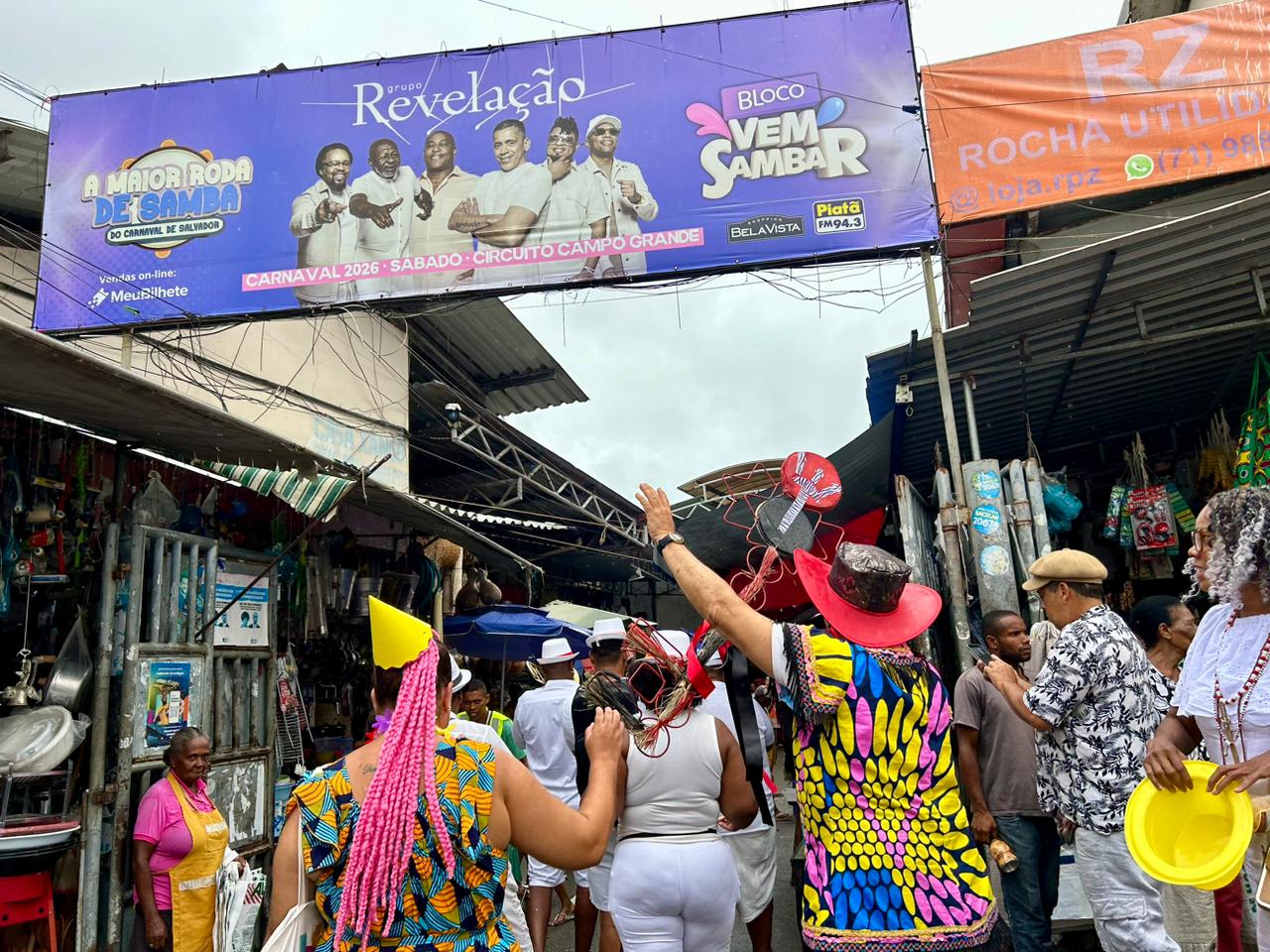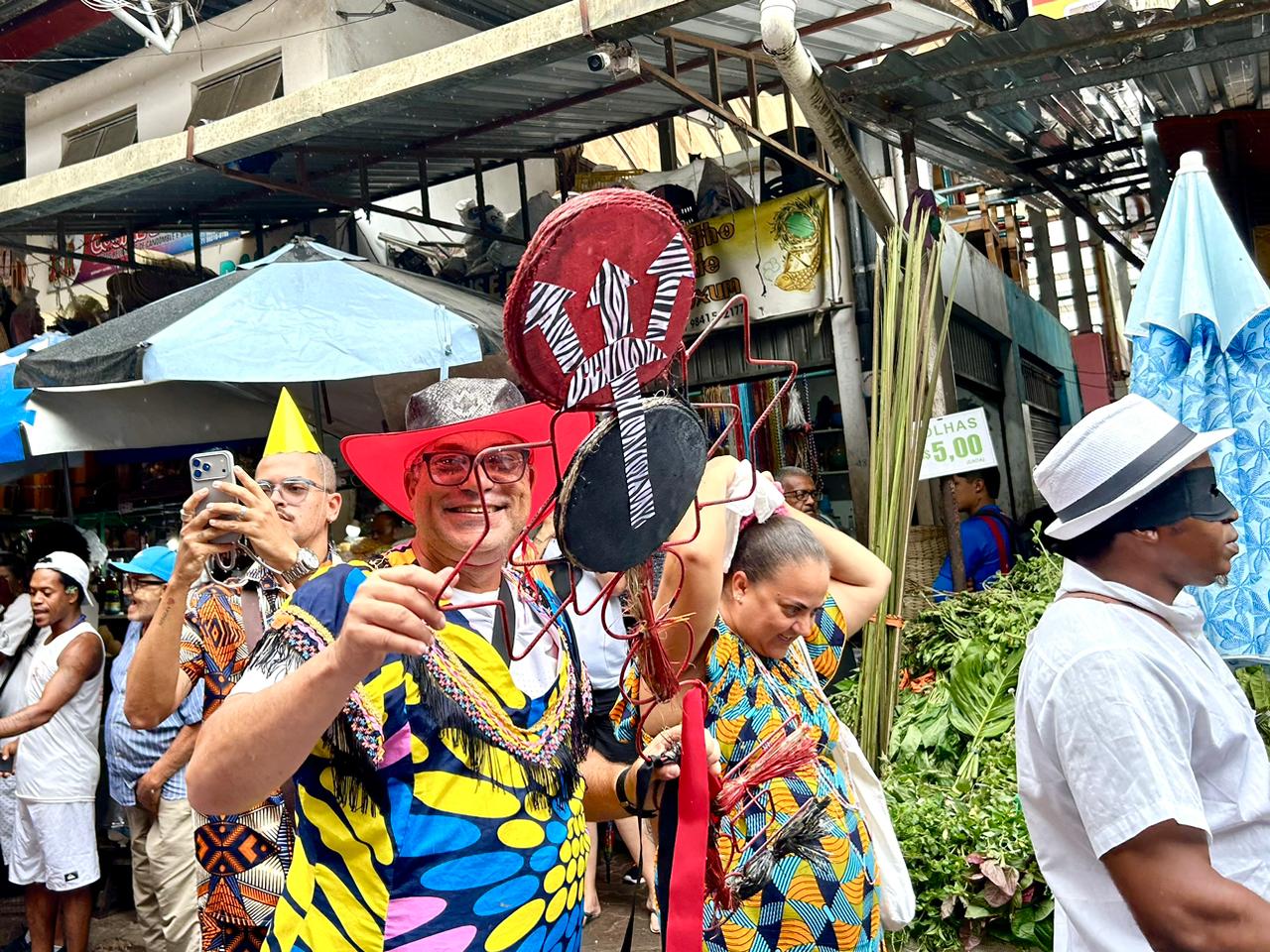 O Bando Anunciador desfilou, no último sábado (28), pelas ruas da Feira de São Joaquim, na Cidade Baixa, em Salvador, iniciando as celebrações do Olojá - Senhor do Mercado, candomblé de rua que reverencia o orixá Exu. Com fanfarra e muita animação, o grupo divulgou para feirantes, clientes e turistas a programação da festa, que terá seu ponto alto no dia 7 de março, nas instalações de São Joaquim. Nos dias 4 e 6 de março, acontecem a Feira de Saúde e o Mercado da Memória Ancestral, respectivamente. Desde 2024, o Olojá tem o apoio da Secretaria de Turismo do Estado (Setur-BA), que desenvolve o projeto Agô Bahia, de incentivo às manifestações culturais e religiosas de matriz africana, com reflexos no incremento do afroturismo baiano.