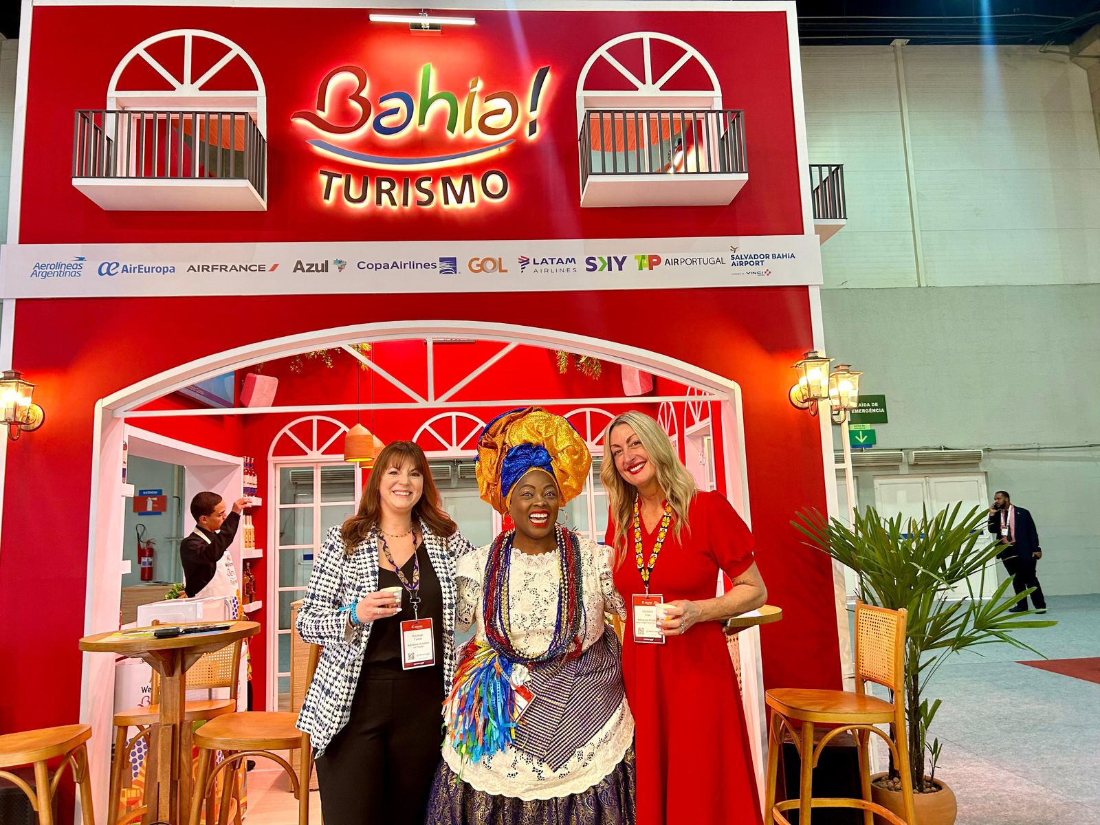 “Eu amo a Bahia e acredito no trabalho conjunto para conseguir fortalecer os potenciais da nossa companhia e do estado”, disse a head de Planejamento da Latam, Victoria Gonzales, durante ativação gastronômica no estande da Setur-BA, com degustação de produtos típicos baianos, que reuniu executivos de empresas de aviação de diversos países.
