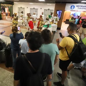 Receptivo de Momo da Setur-BA anima turistas que chegam à Bahia